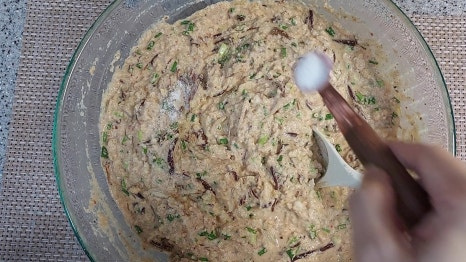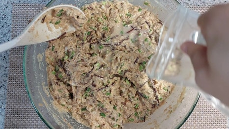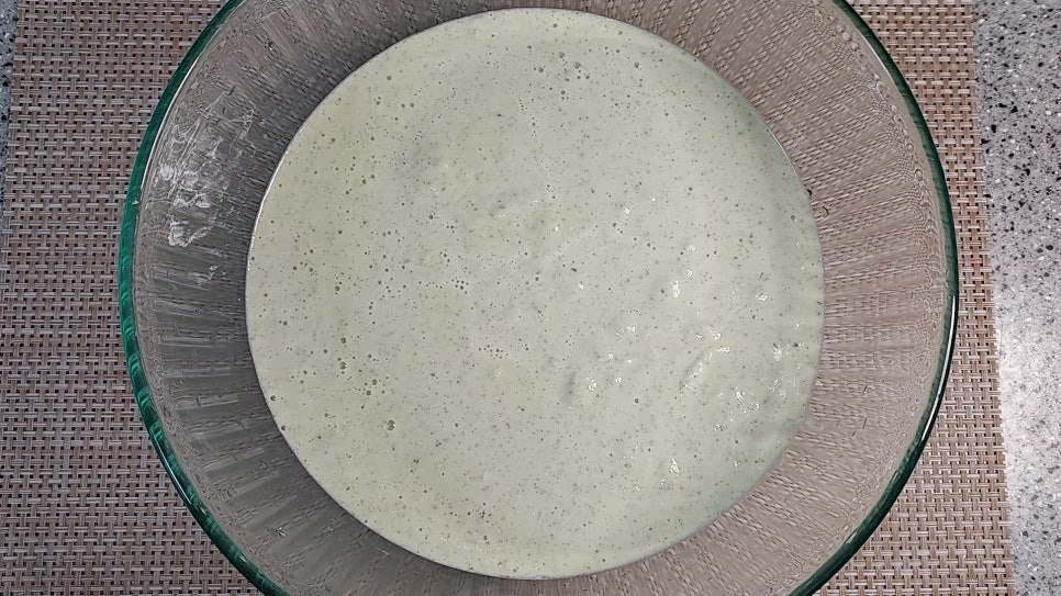 반죽을 섞으면서 너무 되거나 묽지 않게 농도를 조절해 주세요.