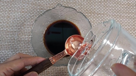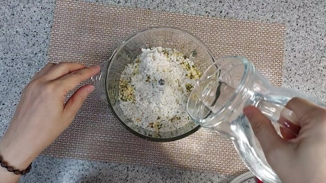 물을 처음부터 많이 넣지 말고 조금씩 조금씩 농도를 보아 가면 넣어주세요.