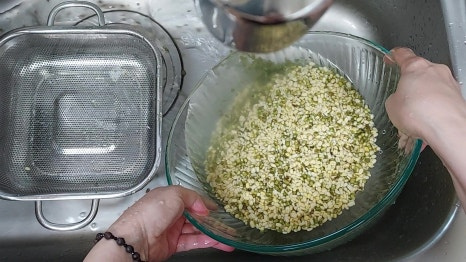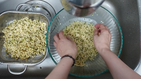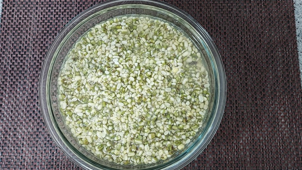 깨끗이 씻은 녹두는 건져서 물기를 빼 주세요.