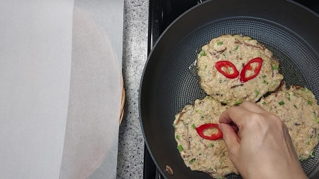 썰어놓은 홍고추나 실파를 올려 모양을 내 주세요.