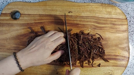 삶은 고사리는 너무 길지 않게 먹기 적당한 길이로 잘라주세요.