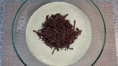 물은 처음부터 많이 넣지 말고 조금씩 넣어가며 묽기를 조절해 주세요.