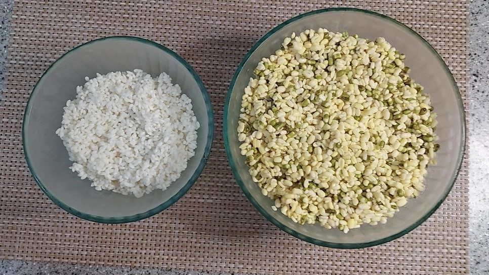 쌀은 미리 깨끗이 씻은 후 녹두와 함께 불려주세요.