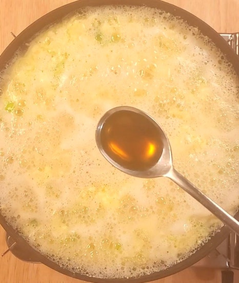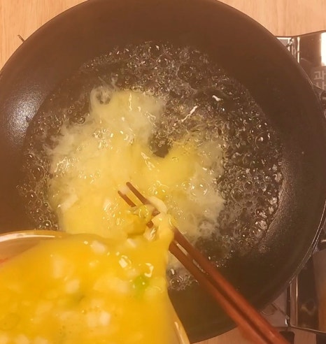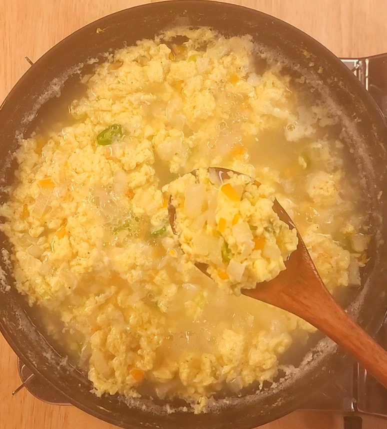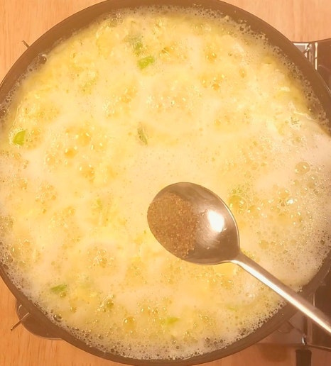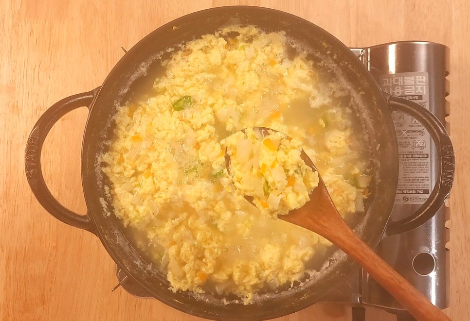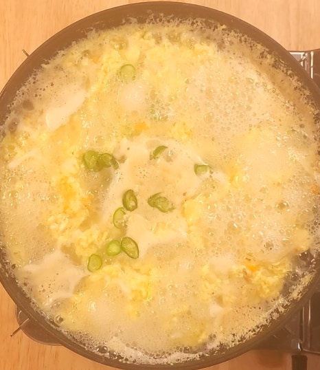 물과 함께 계란을 풀어주면 부드러운 계란국이 완성됩니다.