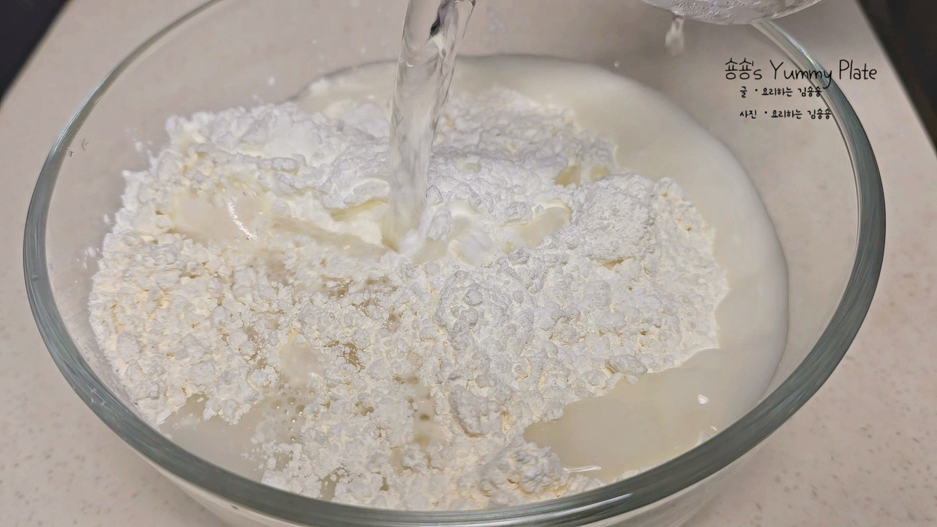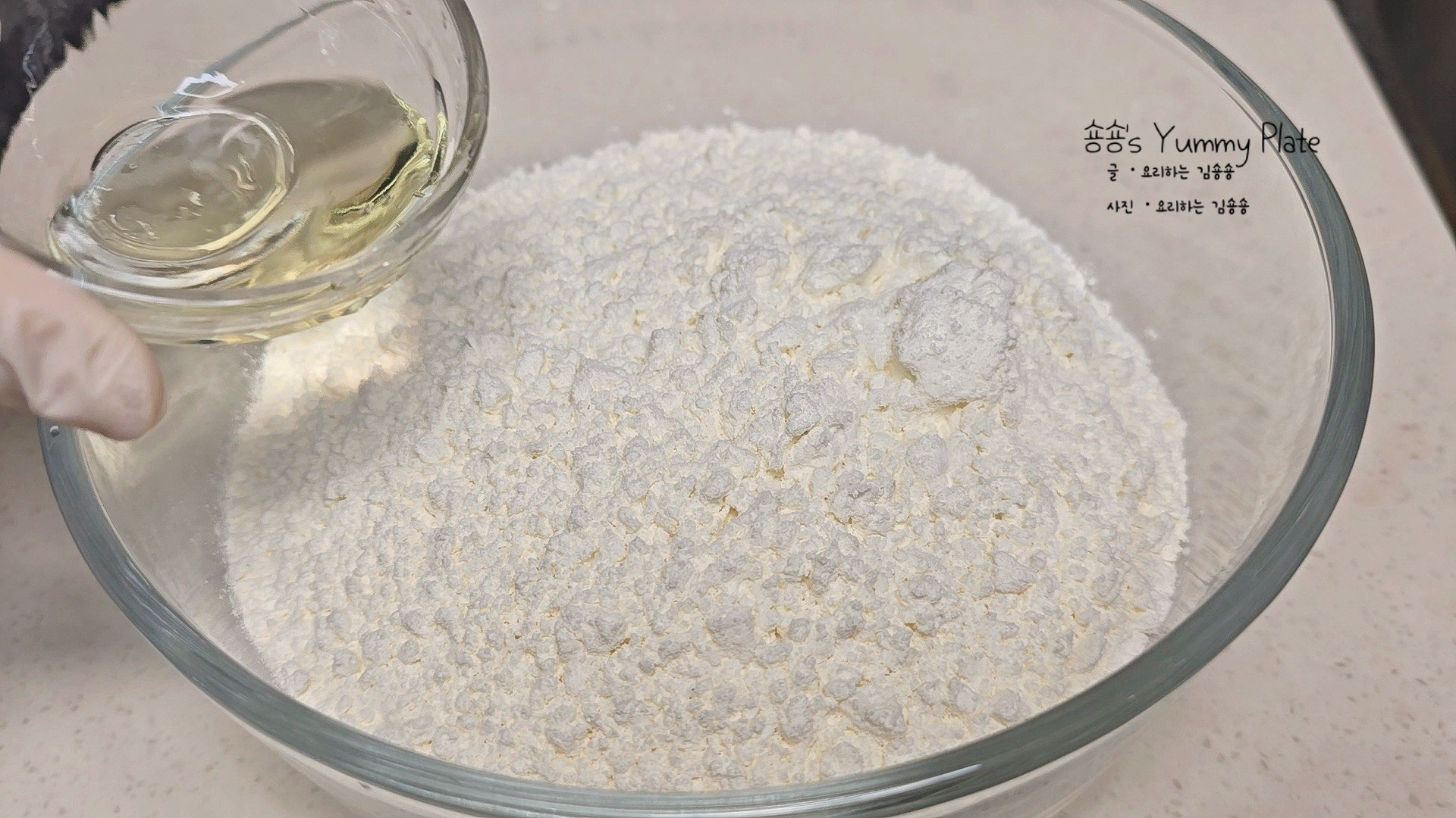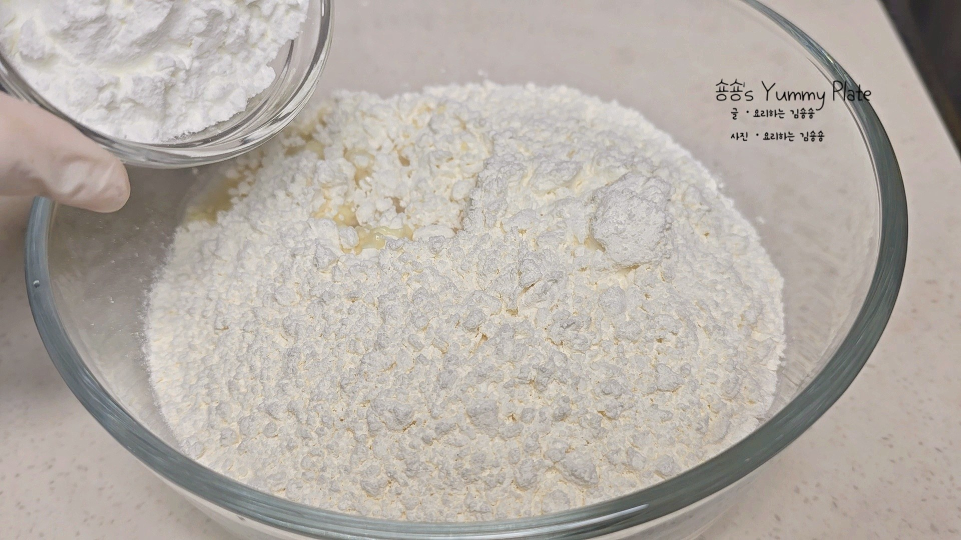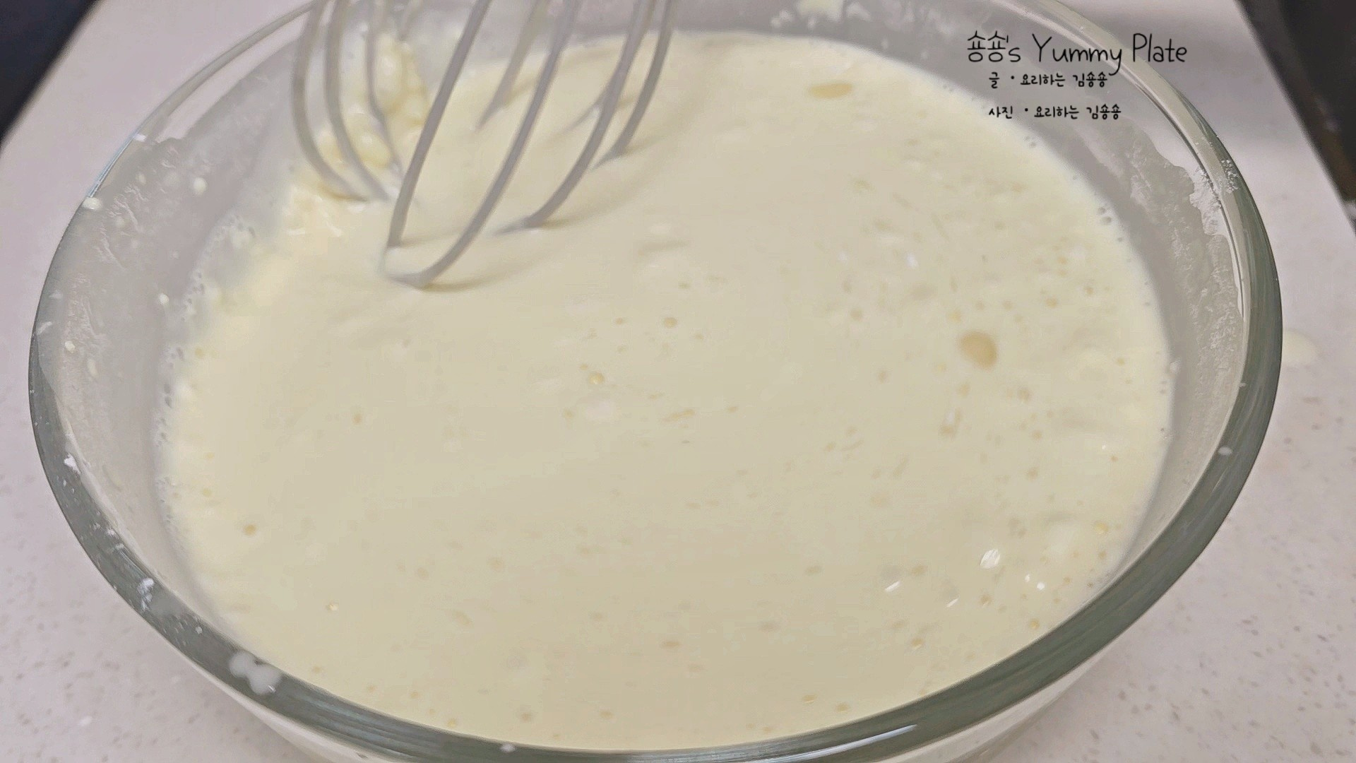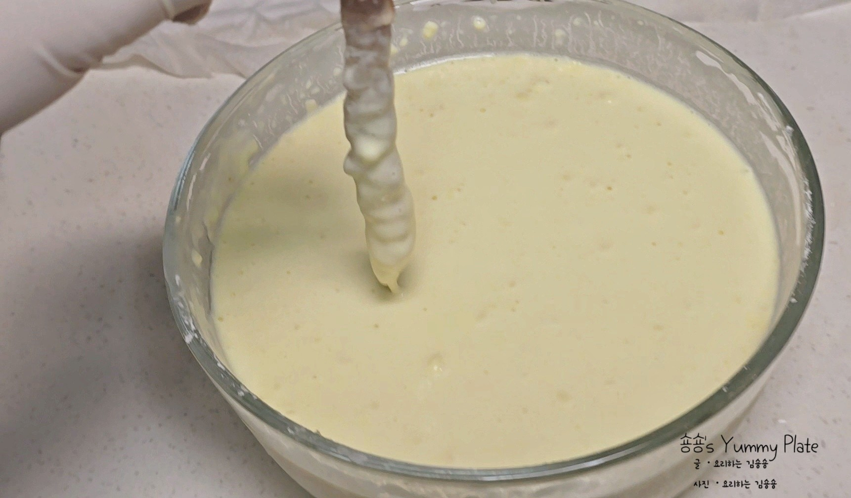 볼에 넣은 재료들은 반죽이 덩어리지지 않도록 부드럽게 잘 섞어주세요.