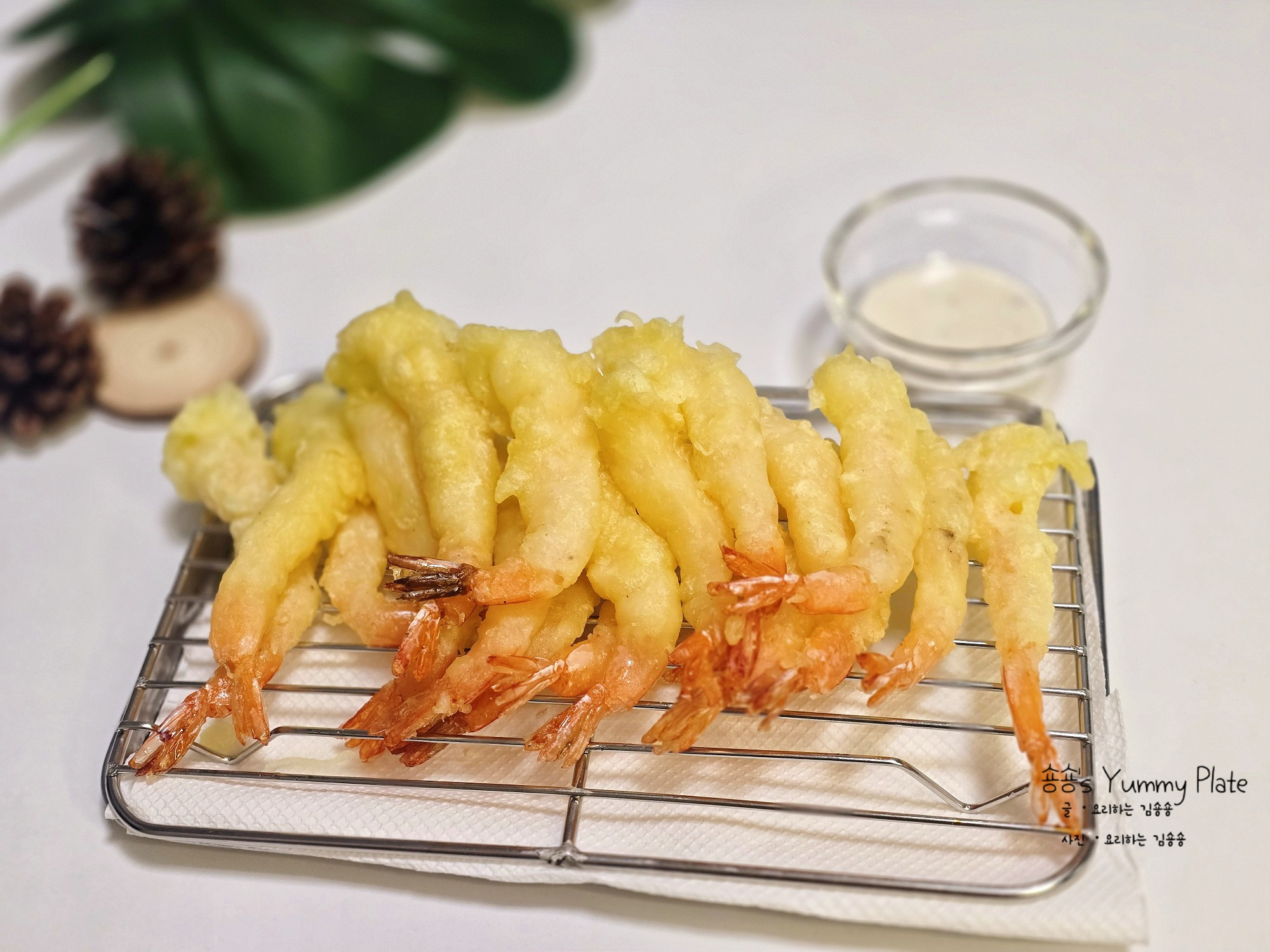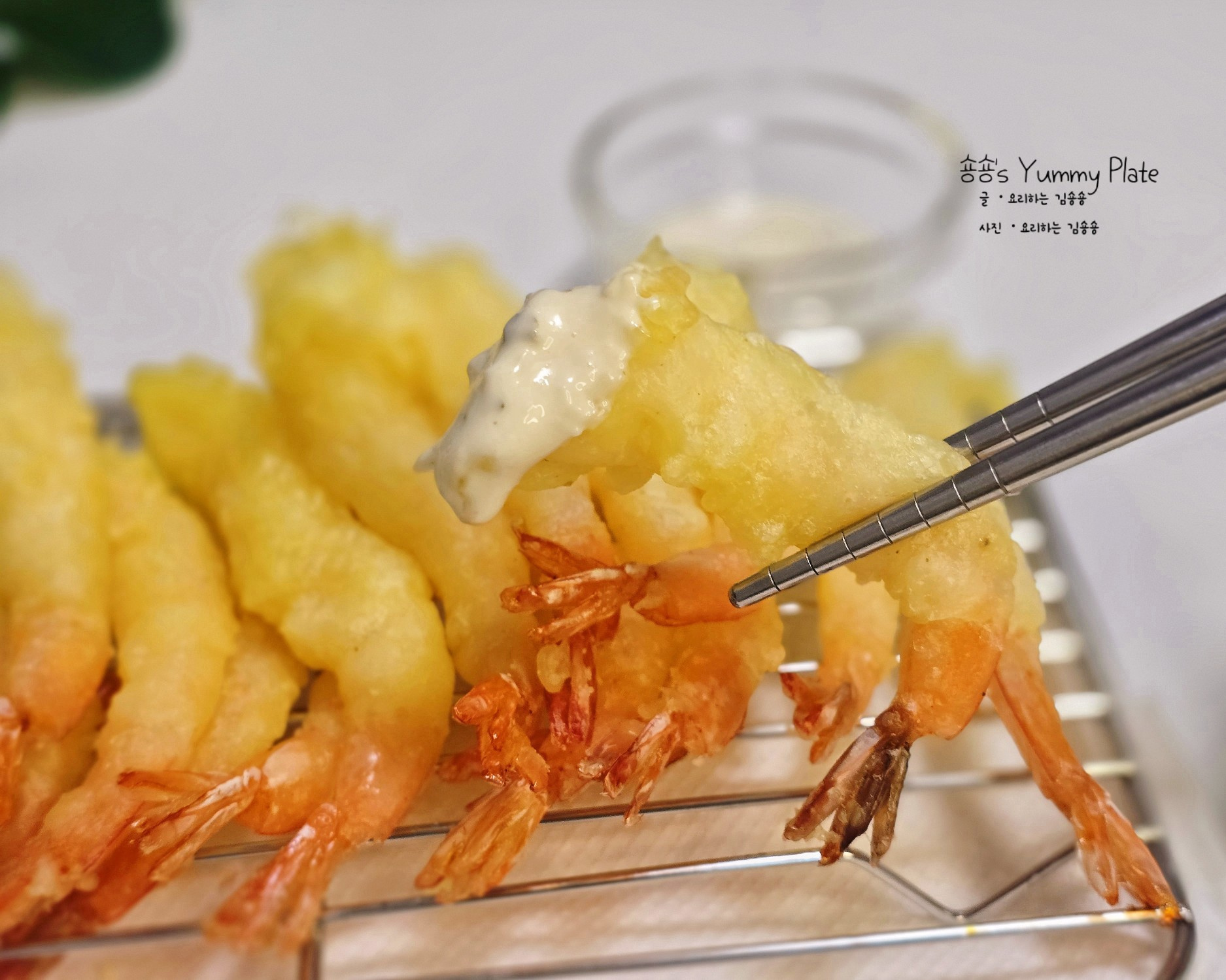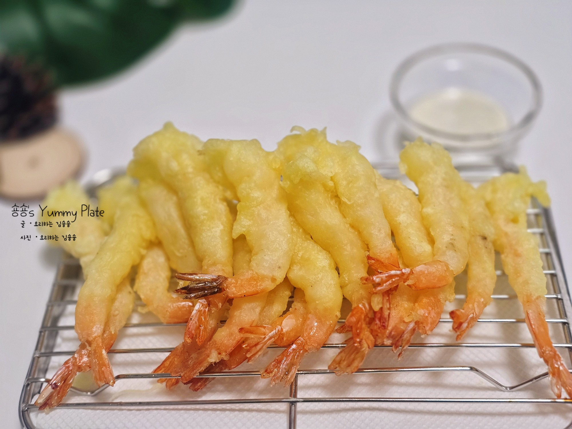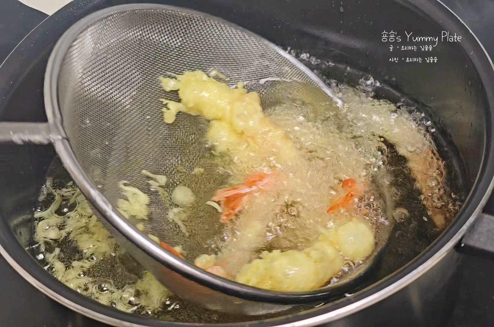 덧가루를 고루 묻힌 새우에 준비해둔 반죽을 입힌 후 달궈진 기름에 튀겨주세요!