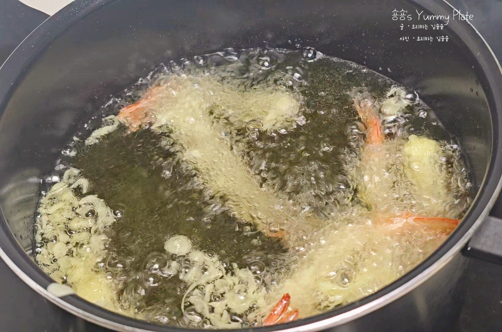 ✨Tip. 튀김을 튀기기 가장 좋은 온도는 나무젓가락을 냄비 바닥에 살짝 찔렀을 때 2~3초 안에 기포가 올라오면 튀기기 가장 좋은 온도랍니다!
