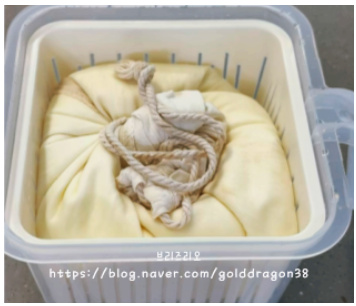 뚜껑 덮기 전에 간장 종지로 누르고 뚜껑 덮으면 유청이 더 잘 빠집니다. 간장종지=누름돌 역할을 하는거죠 ㅋㅋ