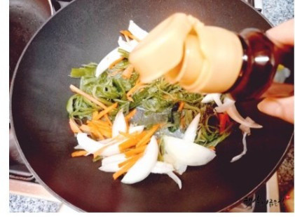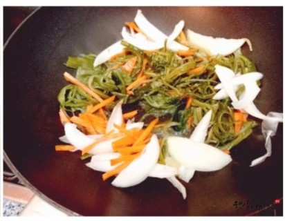 거기에 양파와 당근 채 썬것을 넣어 주세요.