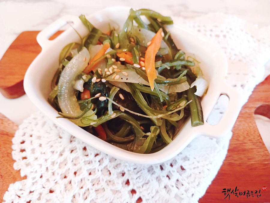 미역줄기가 소금과 함께 보관이 되어서 시중에