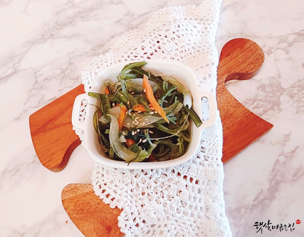 이렇게 소금과 함께 보관이 된 물미역줄기를 소금의 짠기를