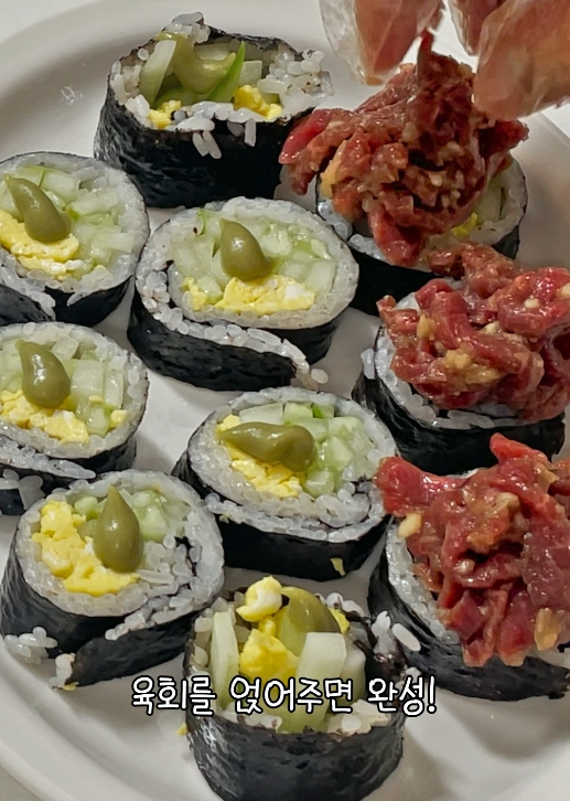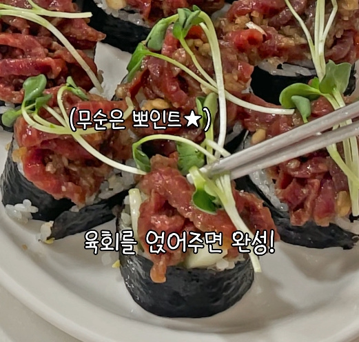 오늘 저녁 색다른 메뉴를 찾고 계신다면 꼭 한번 육회김밥 도전해보세요!