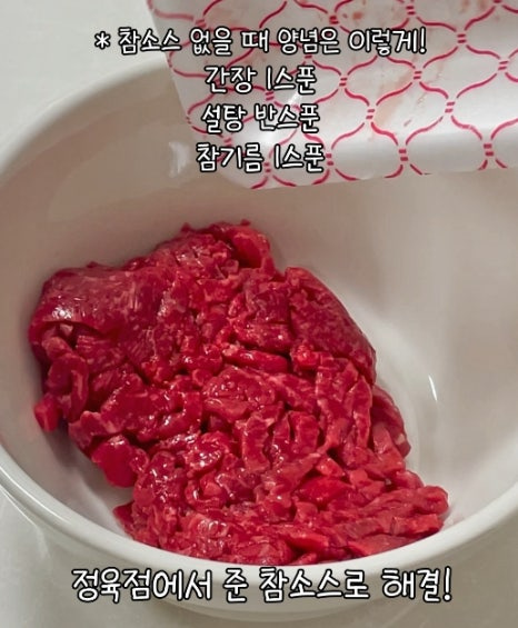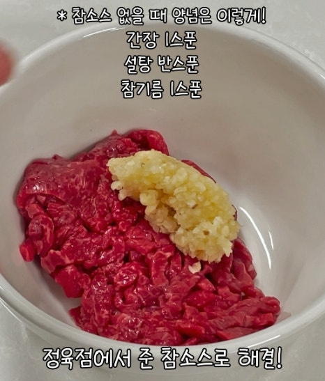 육회 소스 받았을 땐? 육회 소스와 다진마늘 2스푼!