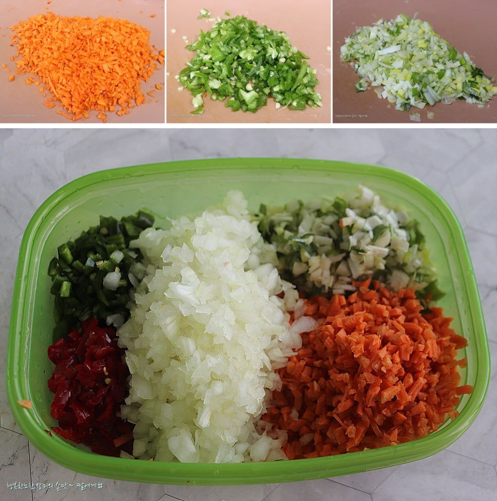 다른 채소들은 다 잘게 다져줍니다.