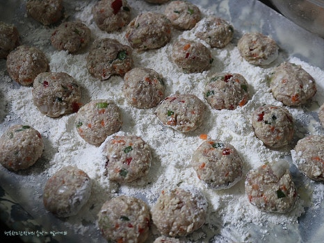 동그랑땡 반죽 밀가루 묻혀서