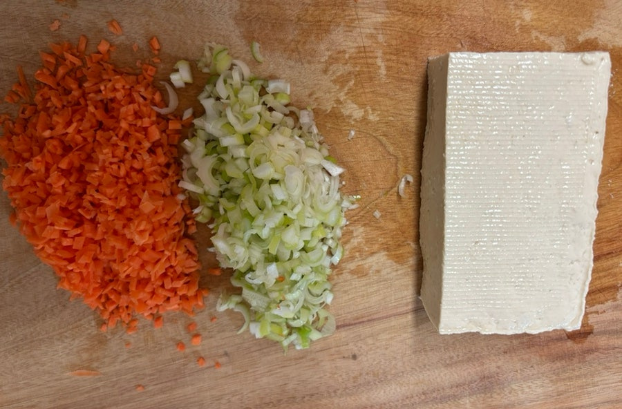 두부는 150g을 준비했어요 그 외에 풋고추나 청양고추 1개를 다져서 넣어주셔도 좋아요.
