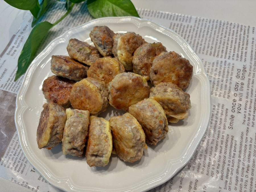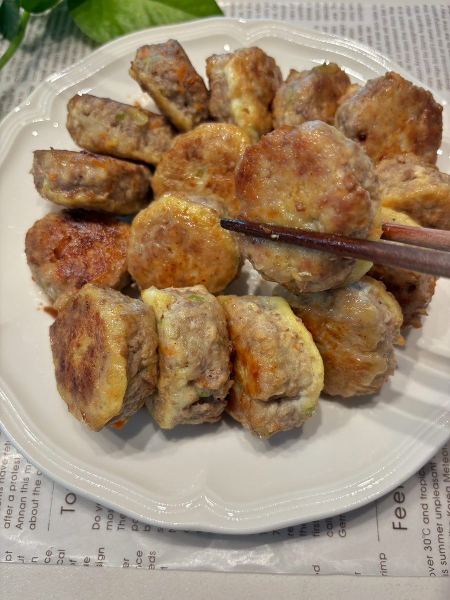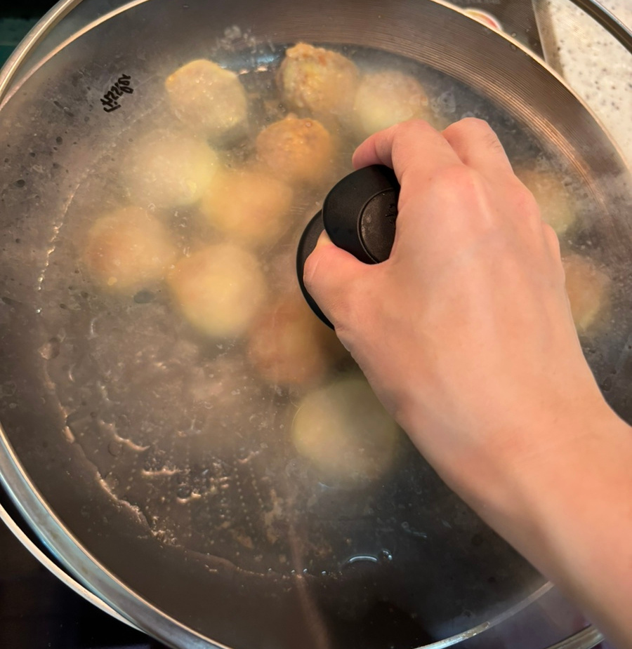 이때 뚜껑을 덮어 익혀주시면 속까지 더 잘 익힐 수 있고 육즙 팡팡 소고기완자전이 완성된답니다.