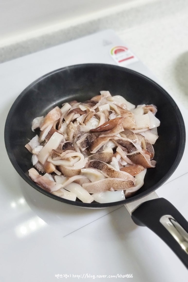 오징어도 마찬가지로 마른팬에 구워줍니다