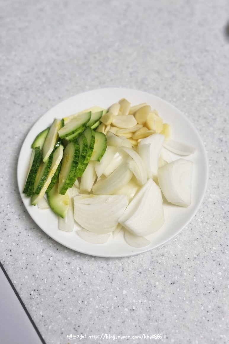 오징어는 너무 오래 익히면 질겨지고 채소숨이 다 죽어버려서 맛이없어지니까