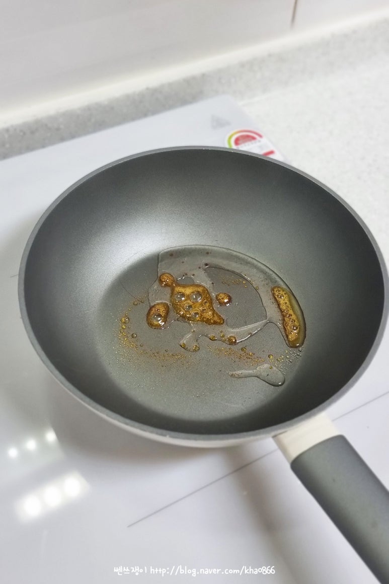 태운 설탕위에 기름을 두르고 설탕을 녹여준뒤