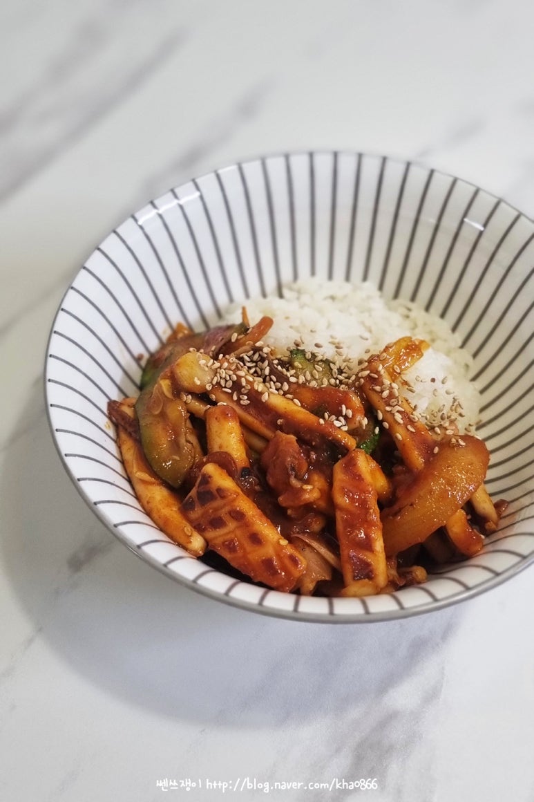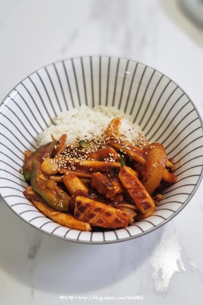 갓지은 흰쌀밥에 오징어볶음 덮밥!!