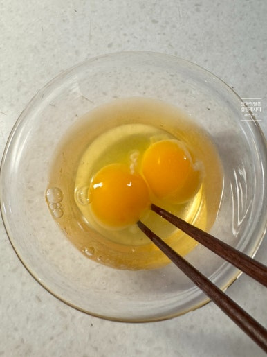 썬 재료를 모두 볼에 담아줍니다. 잘 섞이기 위해 미리 달걀 2개 먼저 풀어주고요.