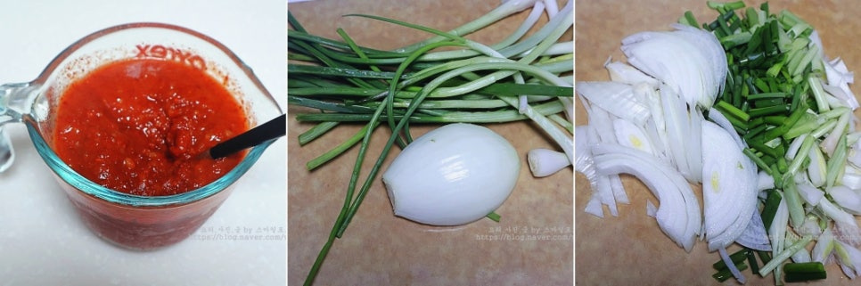 쪽파는 3cm 정도 크기로 썰고 양파도 채 썰어 준비합니다