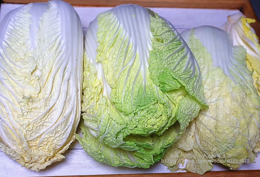 배추가 잘 절여졌는지 줄기 부분을 구부려보면 꺽어지지 않고 잘 구부러집니다