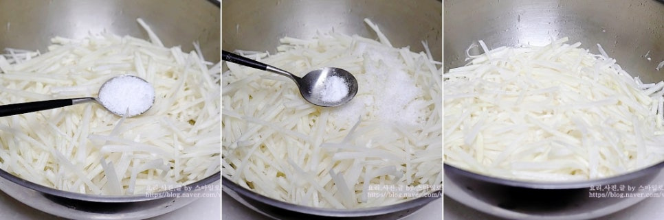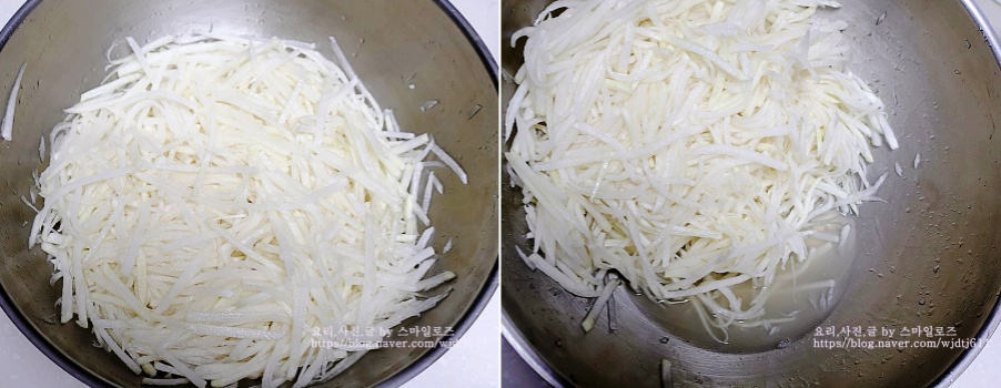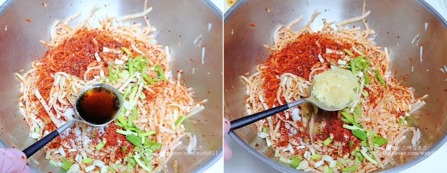 꼬들꼬들한 식감이 나는 무생채를 원하시면 물기를 꼭 짜주는데