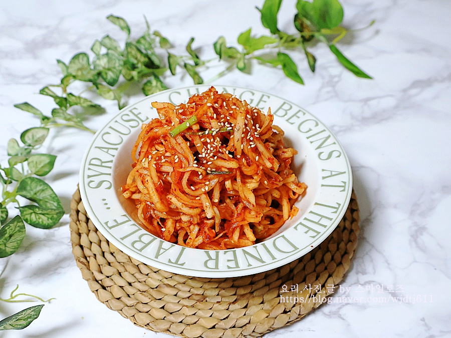 아삭하면서 상큼하고 맛있는 무생채가 완성됩니다