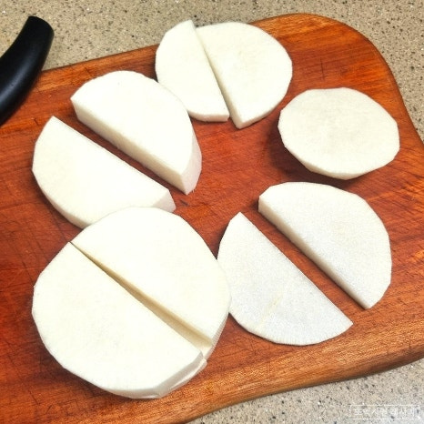 무가 살짝 잠길 정도로 물을 부어주세요.