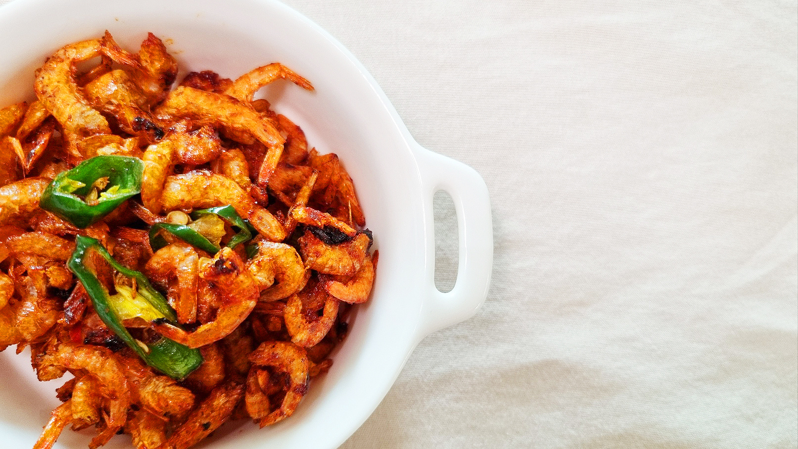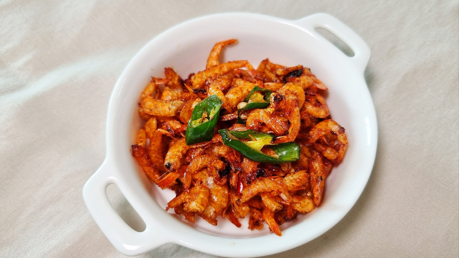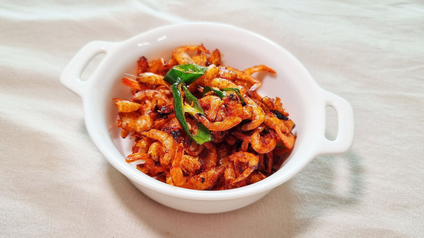 잘 볶아진 새우는 빈 그릇에 잠시 덜어둡니다.