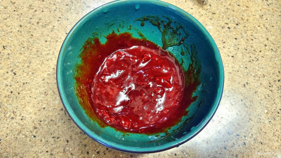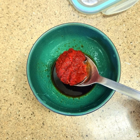 고추장 3큰술 , 진간장 2큰술 , 물엿 2큰술 , 참기름 1큰술 , 식용유 4큰술