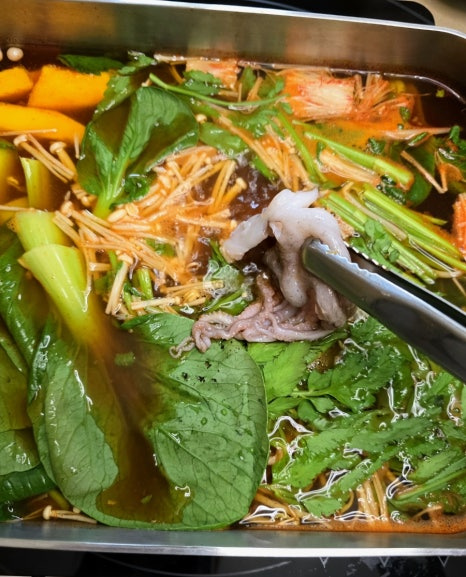 샤브샤브 하면 뭐다? 국물! 국물이 반이에요, 여러분~ 근데 우리 집은 매운 거 좋아하는 신랑, 아들, 매운 거 못 먹는 딸... 이 조합이 항상 문제거든요.
