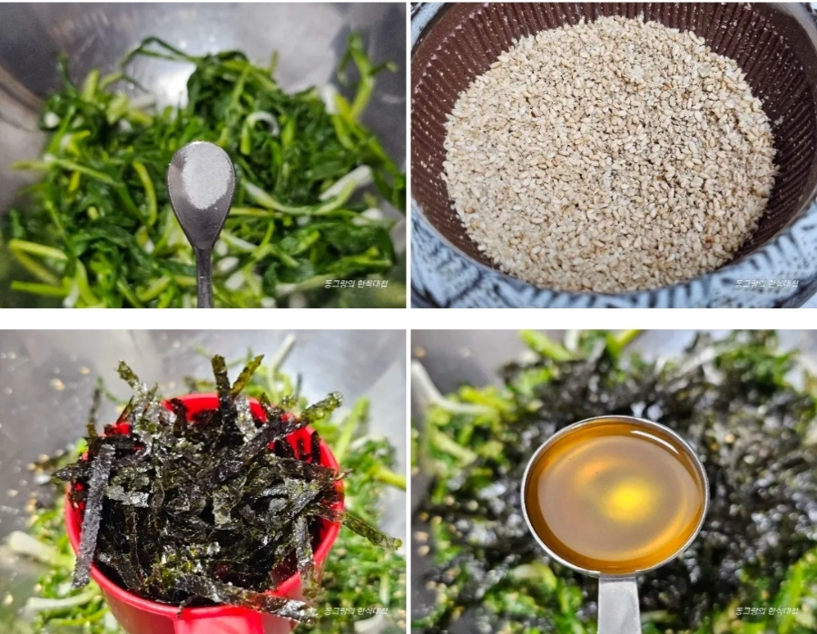김가루는 소금 간이 되어 있는 건데요. 김가루 염도에 따라 조금씩 넣어가며 맛소금은 가감하세요.