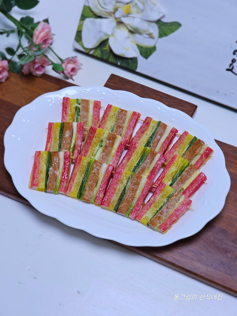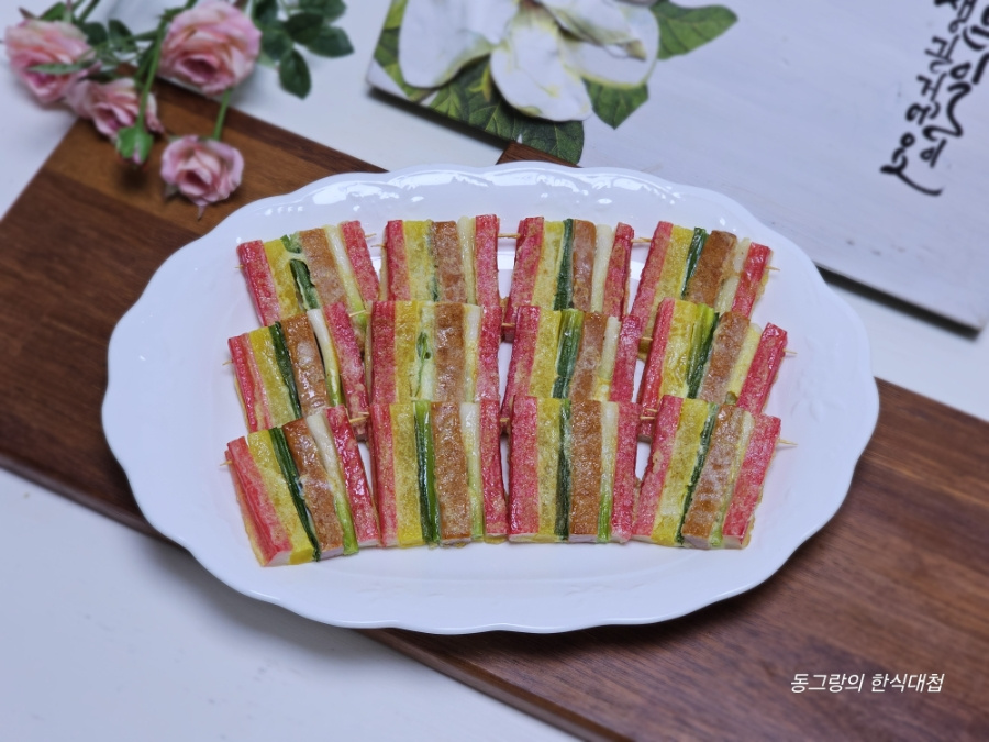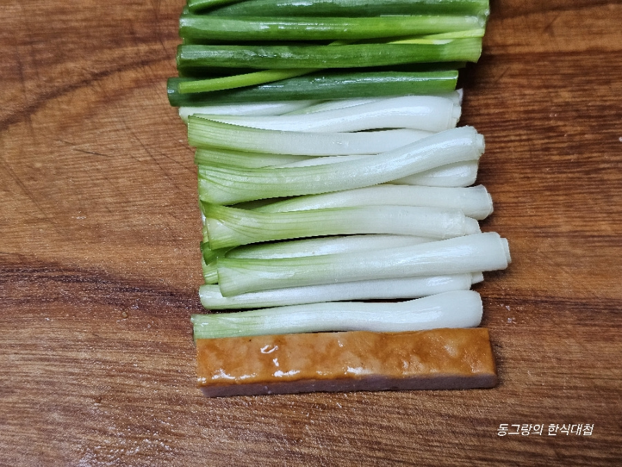 쪽파는 뿌리 쪽과 잎 쪽이 서로 다른 색이라 띄워서 꽂아 주세요.