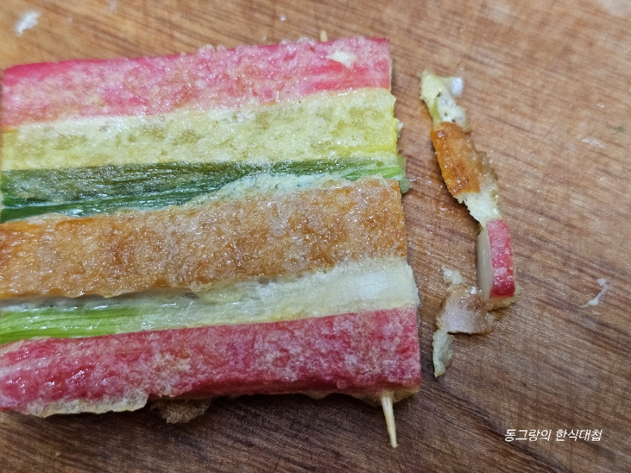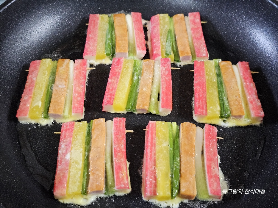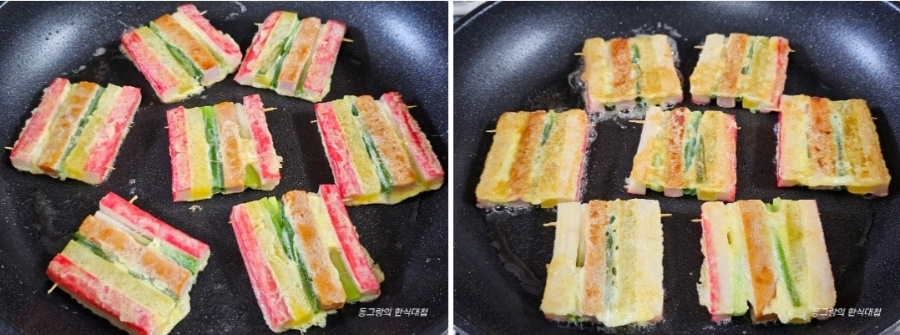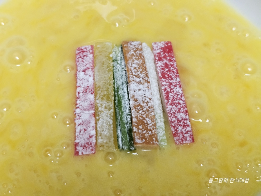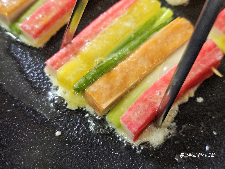 가운데가 틈이 생기면 숟가락으로 계란물을 살짝 부으면 깔끔하답니다.