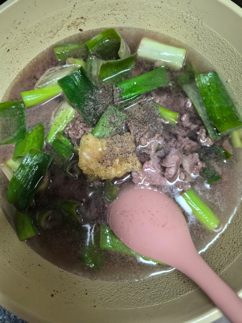 생수, 후추 넣어서 강불로 30분 끓여주세요