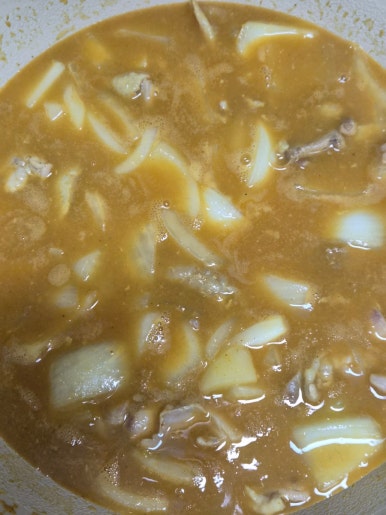 카레랑 물 넣고 카레를 잘 풀어주세요
