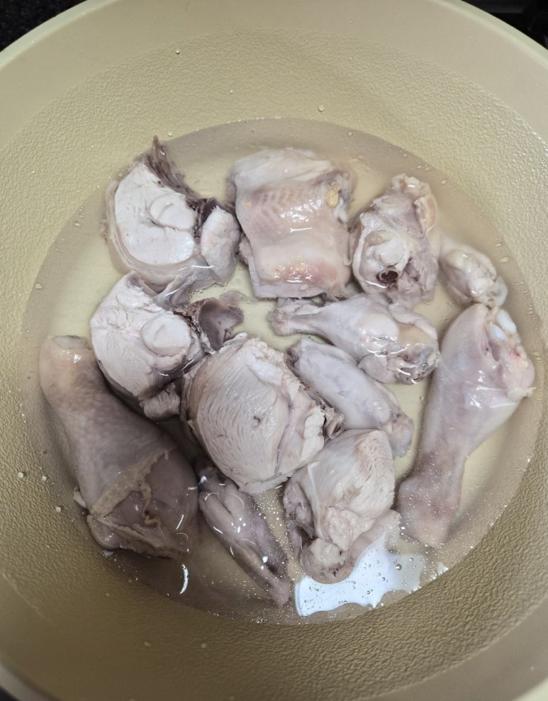 닭을 한 번 데치고 하려고 물을 끓여줍니다