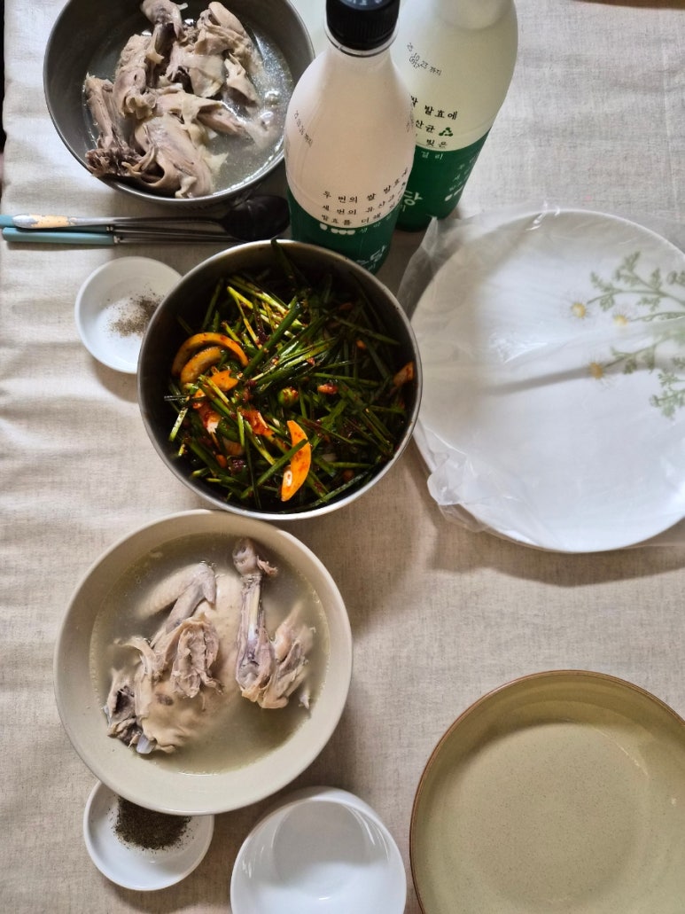 백숙+부추무침+막걸리