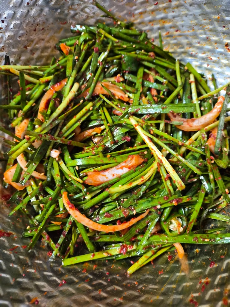 양념장을 다 넣고 부추가 풋내가 안 나게