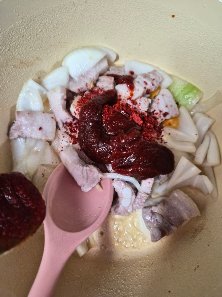안녕하세요 김씨네입니다! 오늘은 대패삼겹살을 넣은 고추장찌개를 만들어 볼게요! 준비물 대패삼겹살 150-...