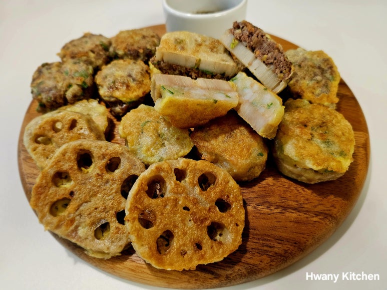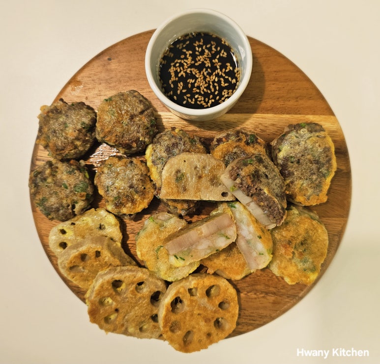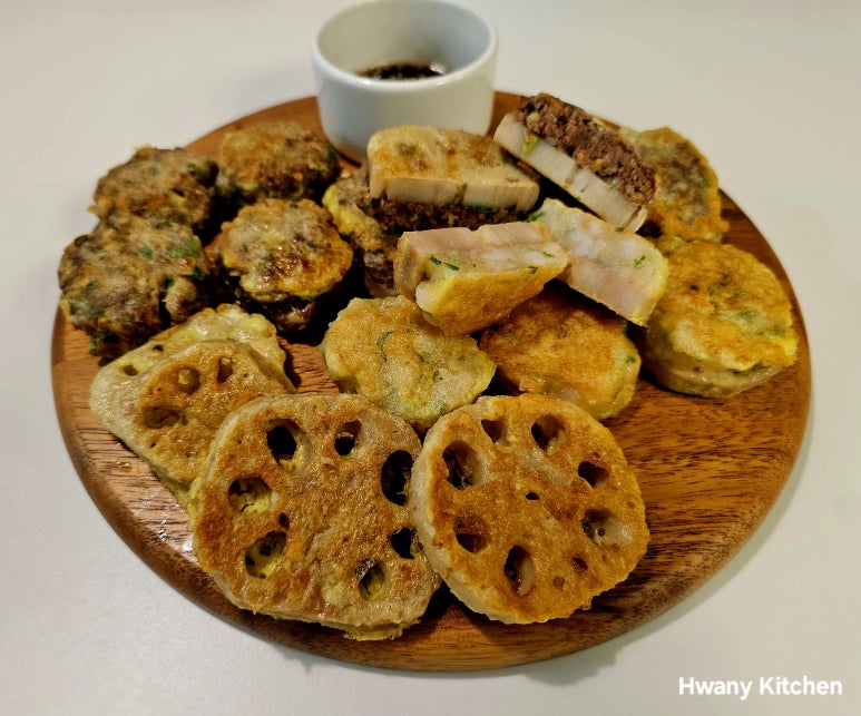 짜쟌~ 드디어 완성된 소고기 연근전, 새우 연근전, 연근전, 완자전 완성!