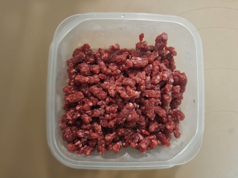 표고버섯전 만들어주고 남은 다진육(100~150g)을 전자레인지에 해동해서 준비해준다