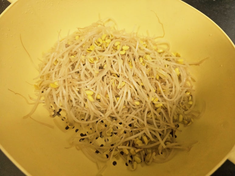 콩나물을 흐르는 물에 깨끗하게 씻어준 후 끓는물에 콩나물을 데쳐준 후 콩나물만 건져내고 잠시 모셔둔다