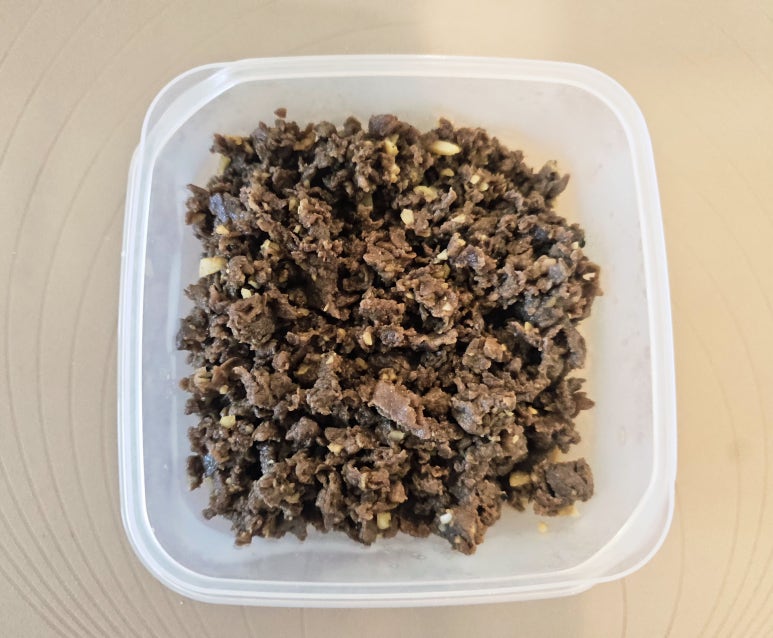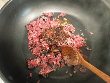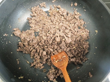 다진 소고기(200~300g)에 앙념장을 넣고 볶으면서 양념이 골고루 잘 베이게끔 볶아주고 잠시 모셔둔다