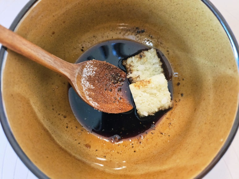간장 1숟가락, 간마늘 1숟가락, 설탕 1/2숟가락, 후추 살짝 넣고 잘 섞어준다