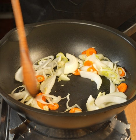 사각 어묵 4 장 , 양파 1/2 개 , 당근 1/4 개 , 대파 1/2 대 , 청양고추 1 개 (선택), 다진 마늘 1 큰술 , 식용유 2 큰술