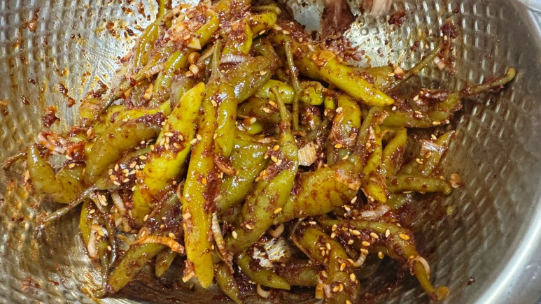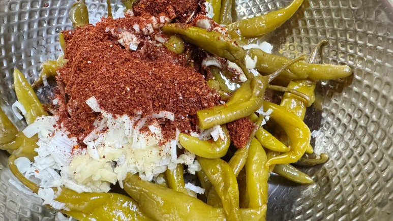 이때 고추장을 너무 많이 넣으면 맛이 텁텁하니 고추장과 고춧가루 비율을 1:2로 맞춰줍니다.